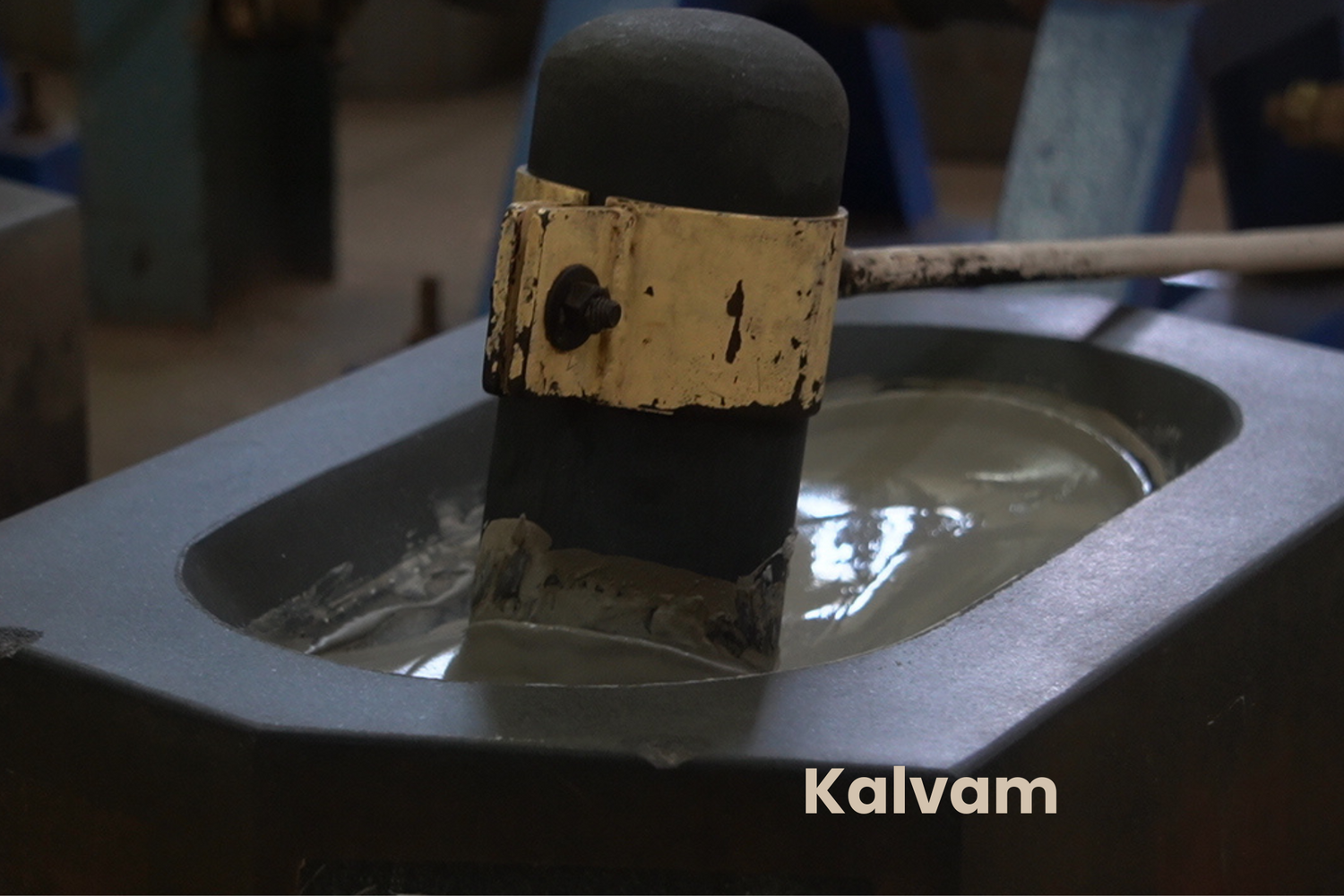 Kalvam is a traditional mortar and pestle used in Ayurveda & Siddha, the ancient Indian system of medicine. It is made of a single piece of stone, typically granite or sandstone and is used to grind herbs, spices and other ingredients into a paste.