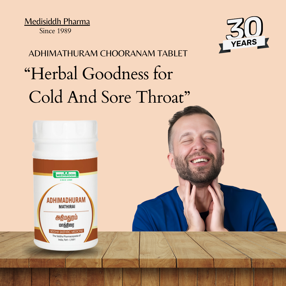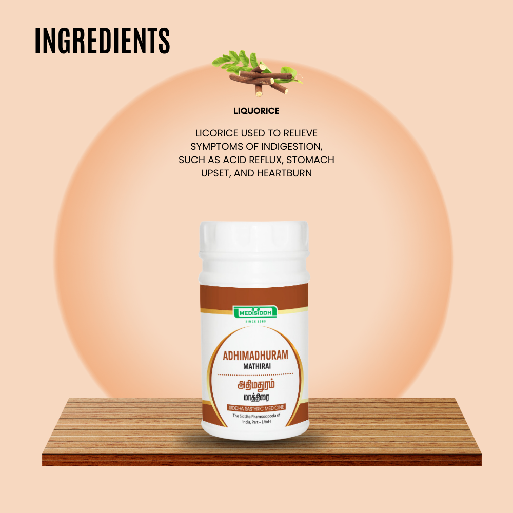 Adhimadhuram Tablet is a classical Siddha medicine in tablet form. It is helpful for cold, cough, breathlessness, PCOD, and duodenal ulcers. It is also helpful for all respiratory problems.
