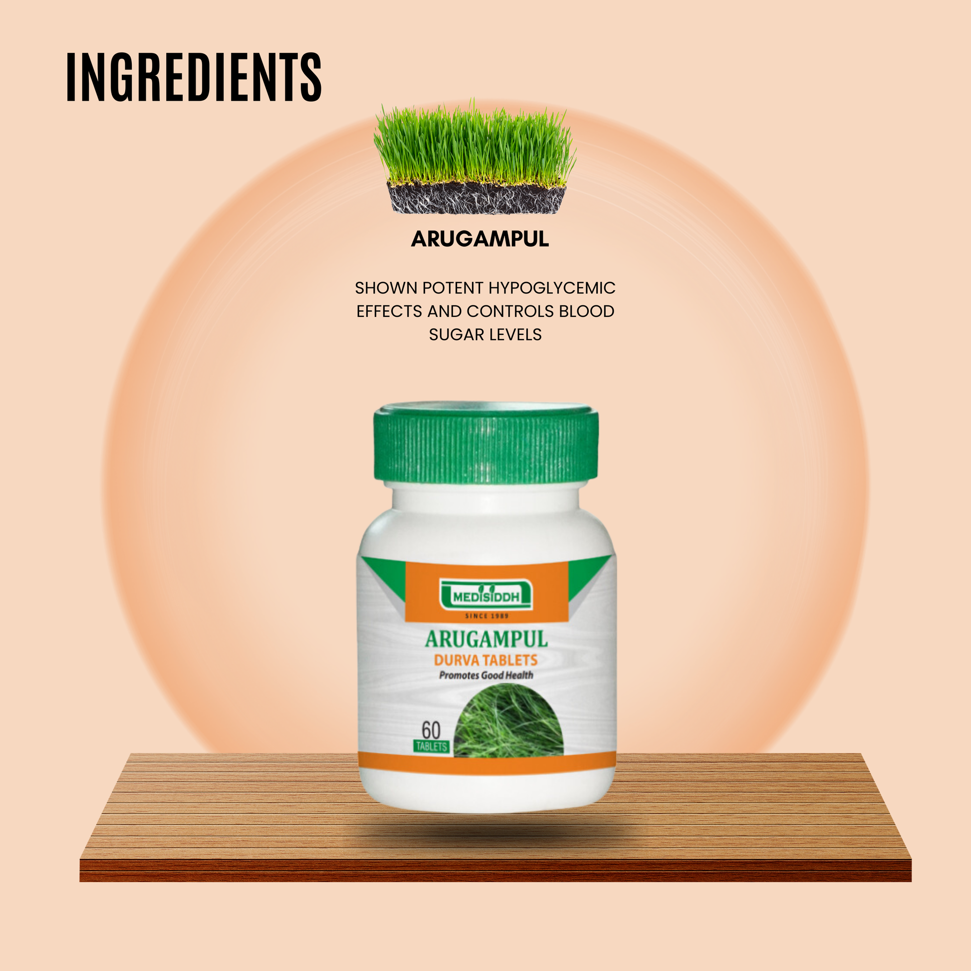 Arugampul Tablet, derived from the revered Bermuda grass, is a natural detoxifier celebrated in Ayurveda and Siddha medicine for over a thousand years. Rich in chlorophyll, it purifies the blood, supports glucose balance, and promotes holistic well-being.