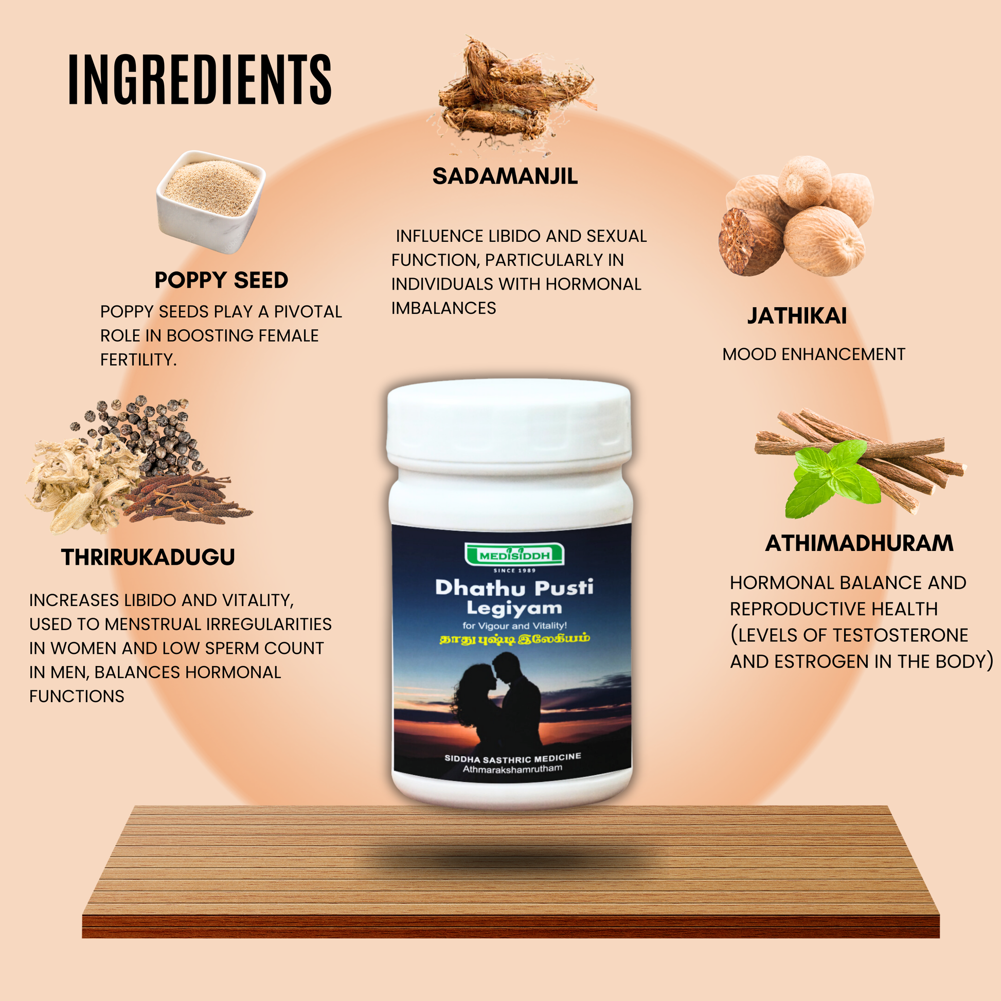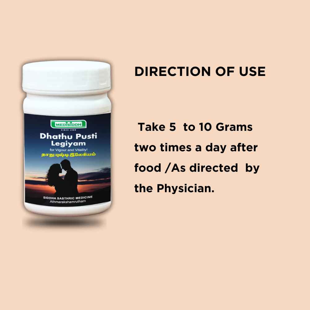 Dhathu Pusti Legiyam is a traditional herbal formulation designed to promote men’s wellness. Made with natural, time-tested ingredients, this legiyam is carefully crafted to address common concerns related to men’s wellness.