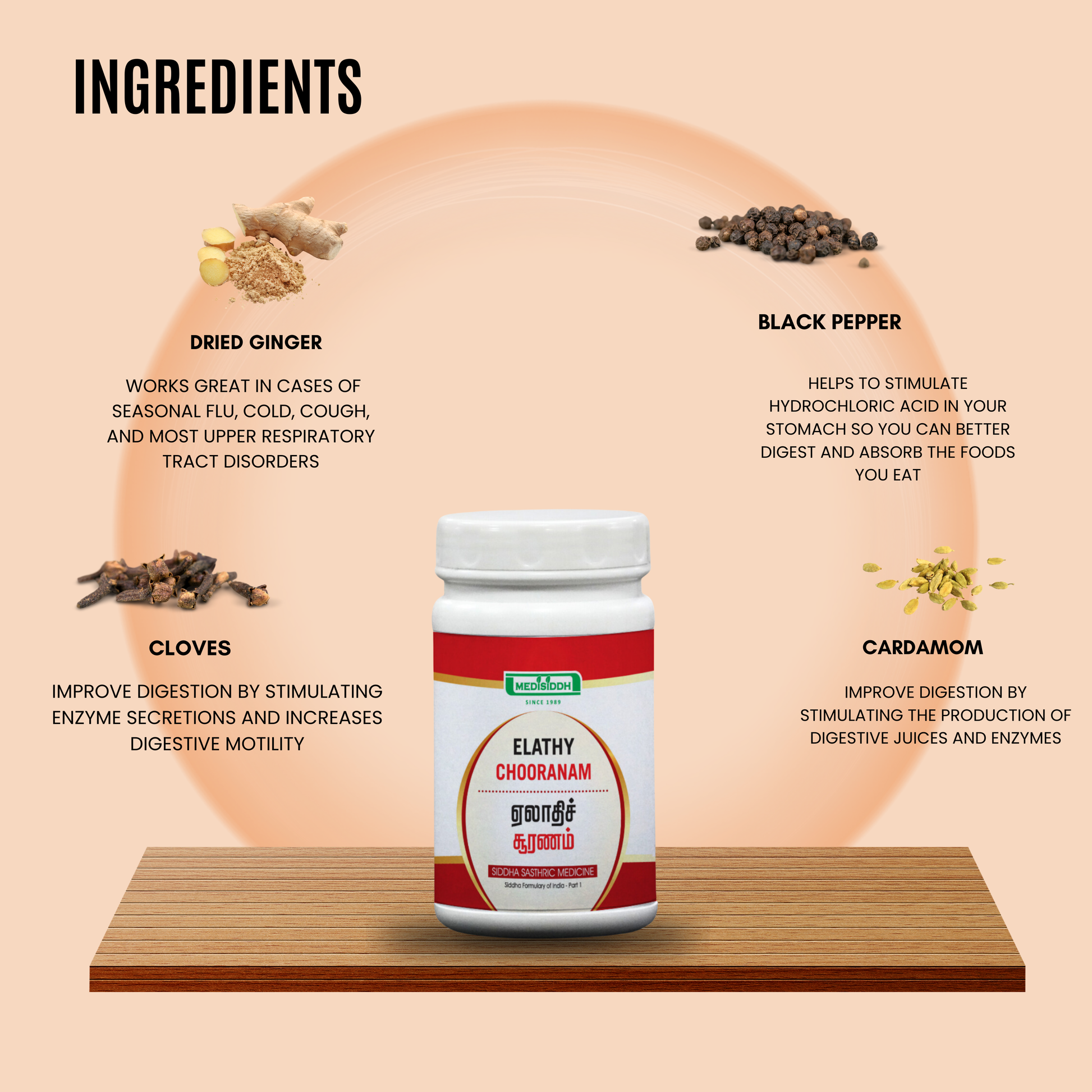 Elathy Chooranam is a natural herbal formulation designed to support digestive health and overall well-being.