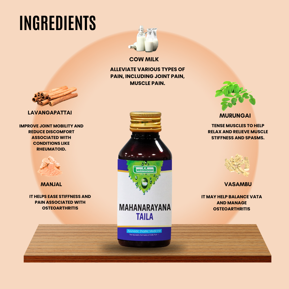 Mahanarayana Taila is often used to alleviate various types of pain, including joint pain, muscle pain.