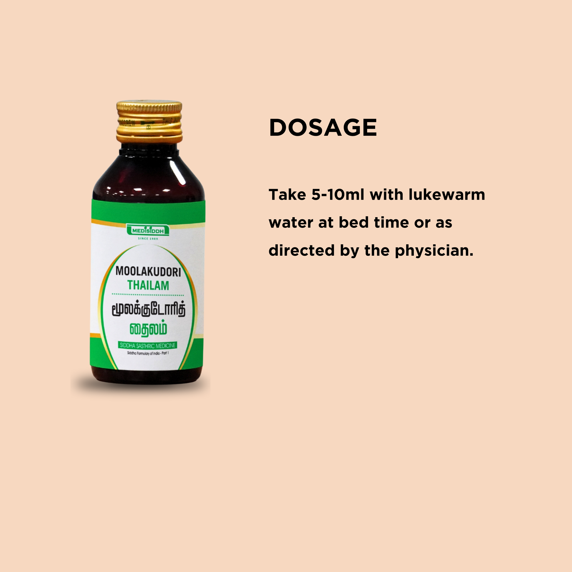 Moolakudori Thailam is a traditional Siddha herbal oil crafted with time-honored ingredients.