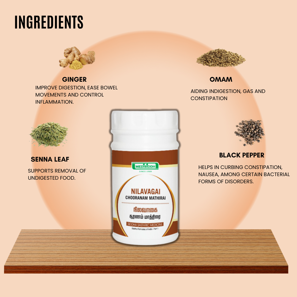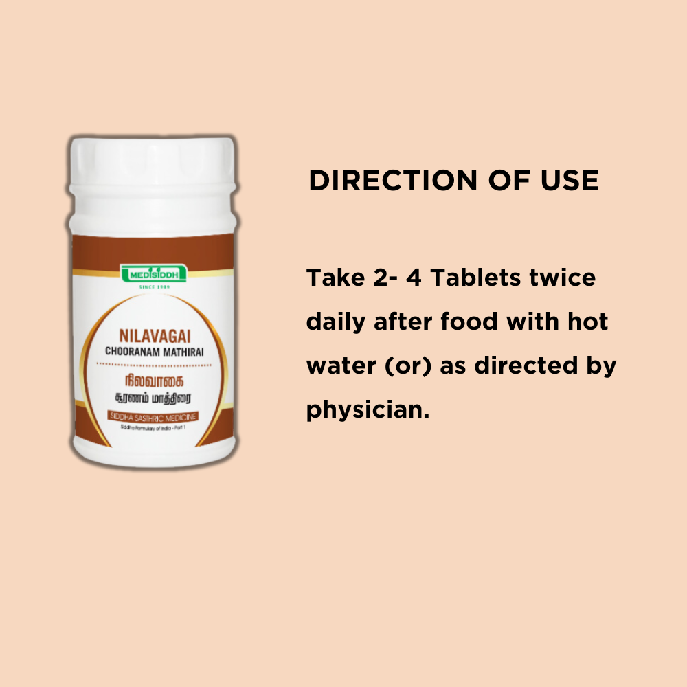 Nilavagai Chooranam Tablet is a traditional herbal formulation crafted from Nilavagai leaves and natural ingredients.