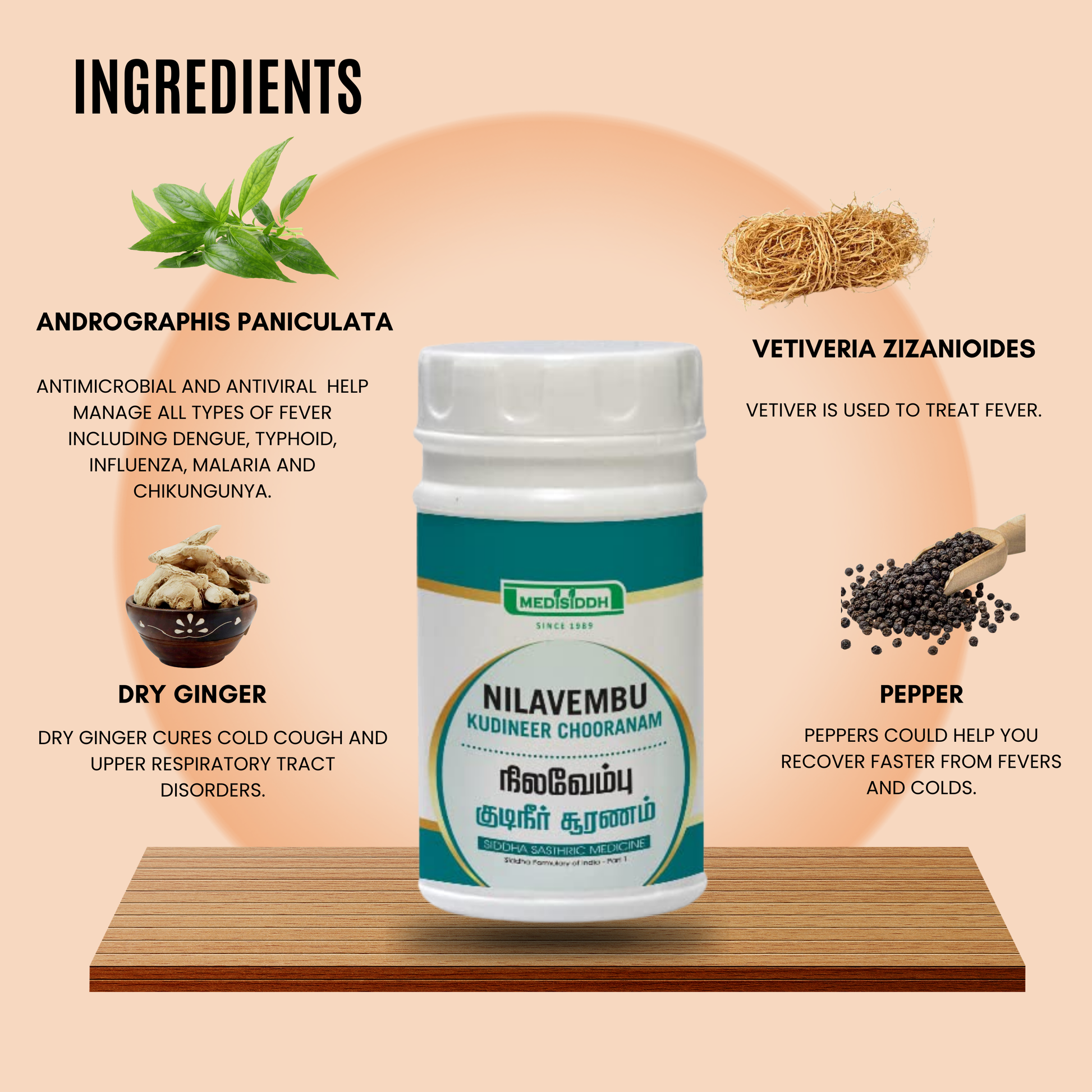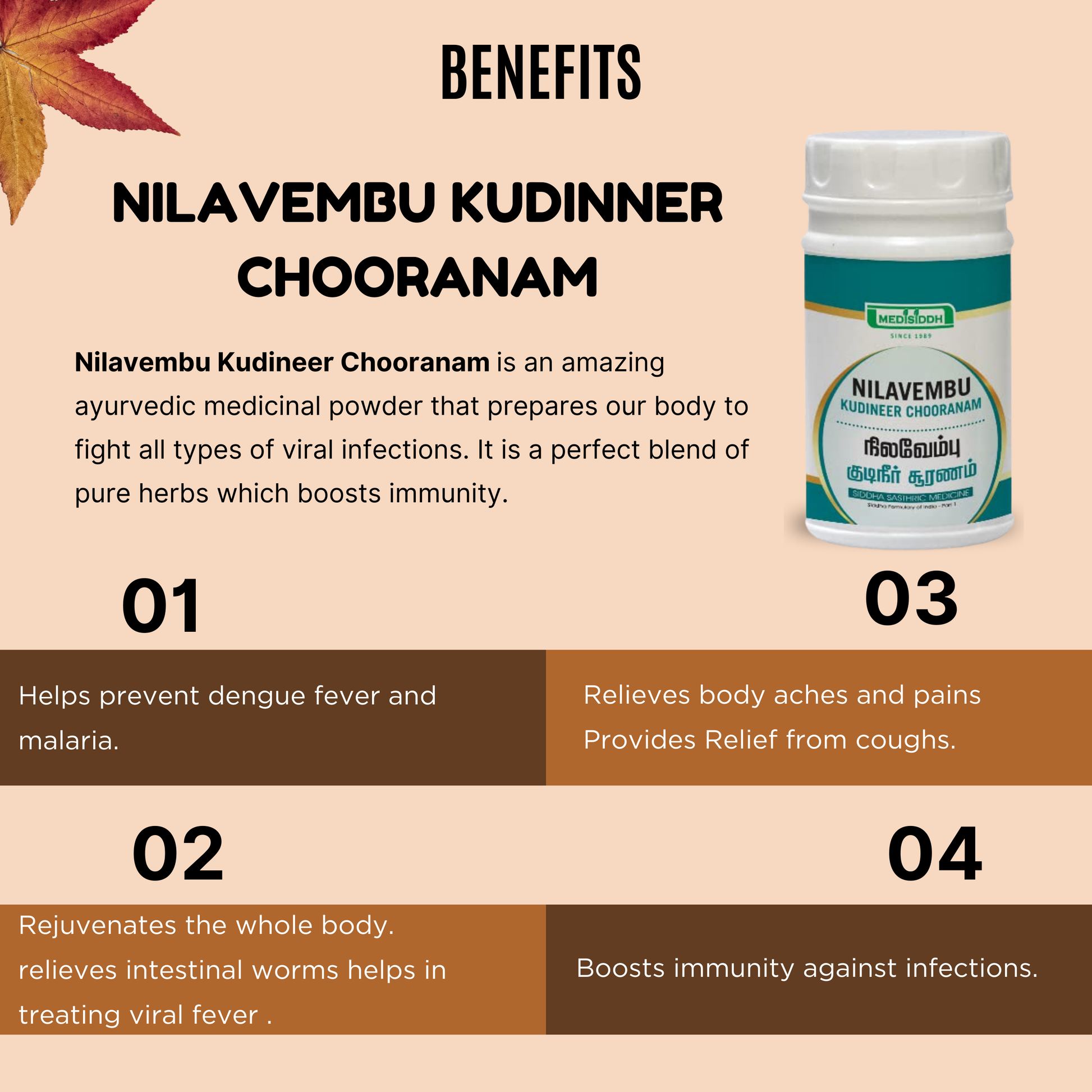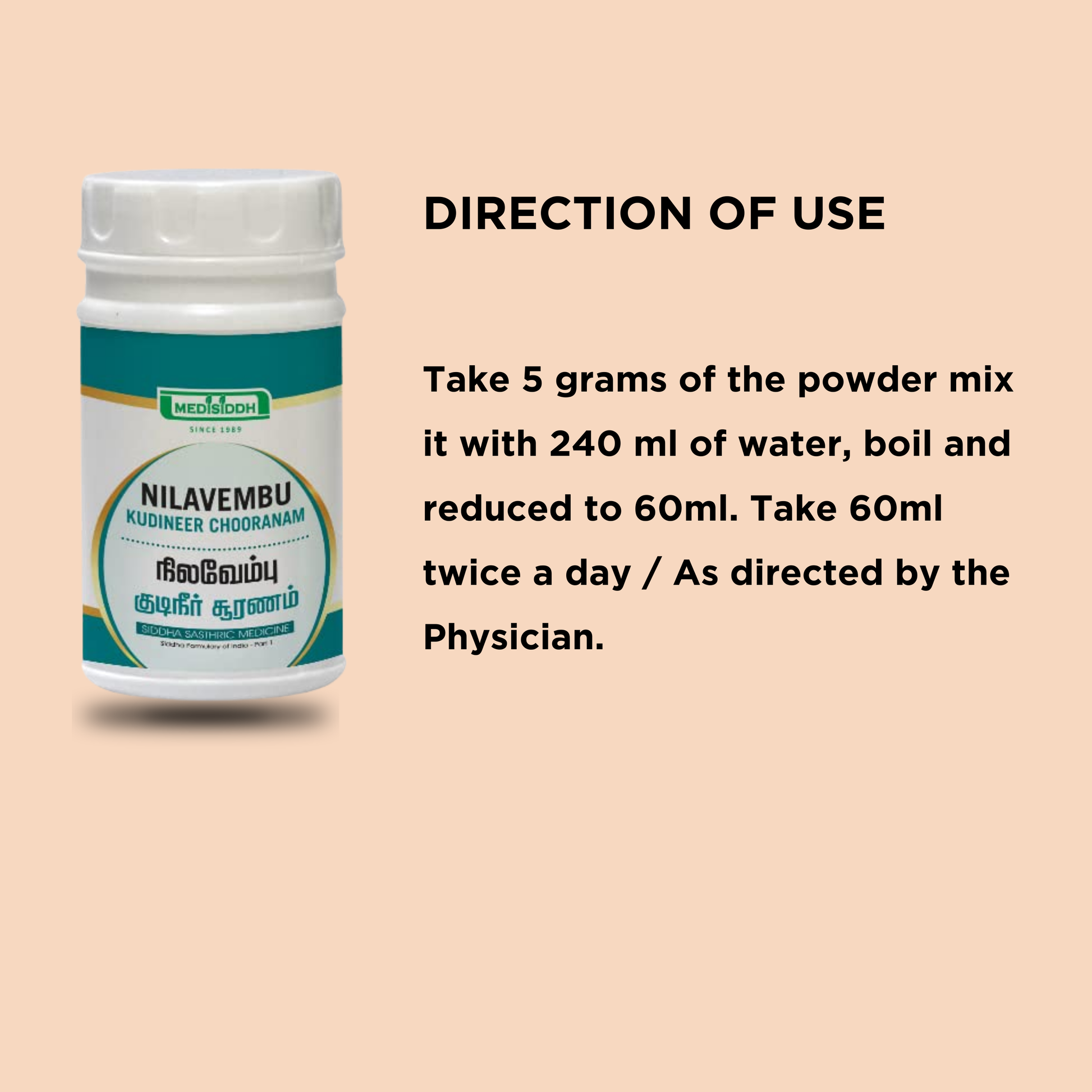 Nilavembu Kudineer Chooranam is a renowned herbal formulation rooted in traditional practices. Carefully crafted with potent herbs, it is celebrated for its ability to promote overall health and well-being.