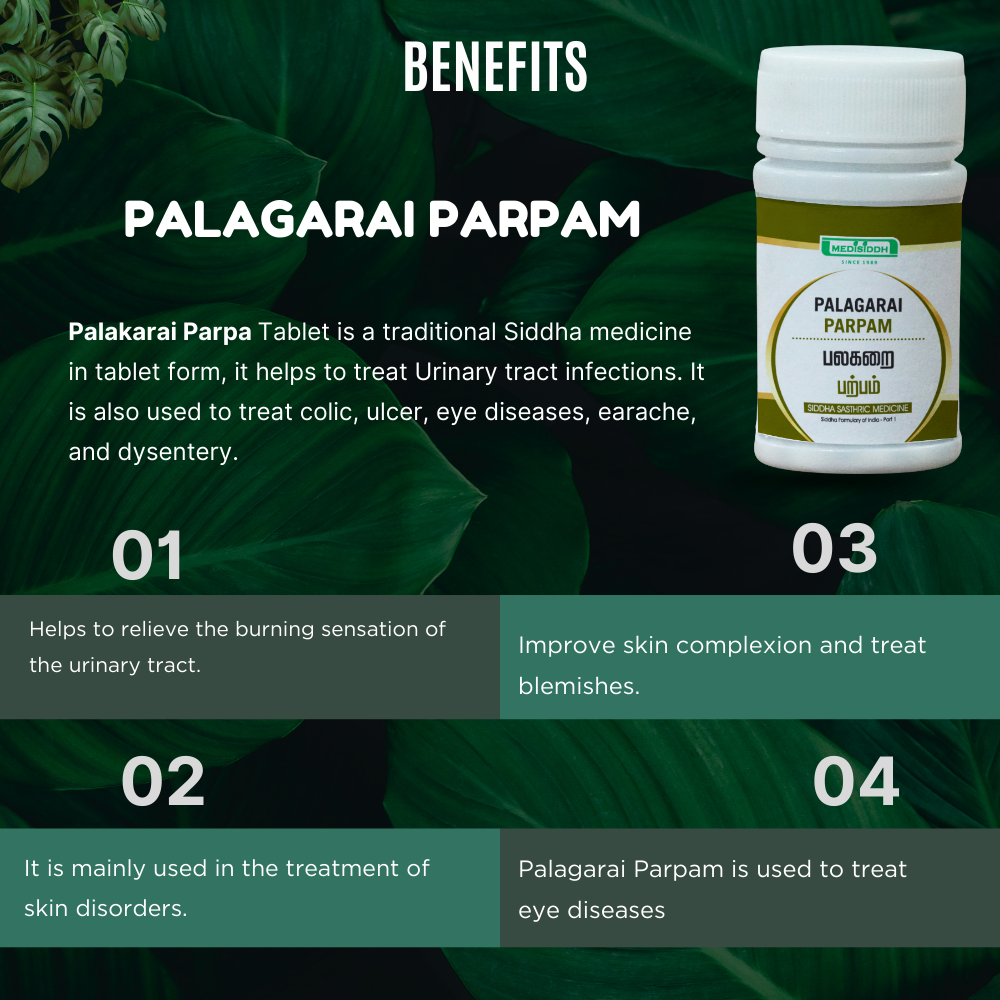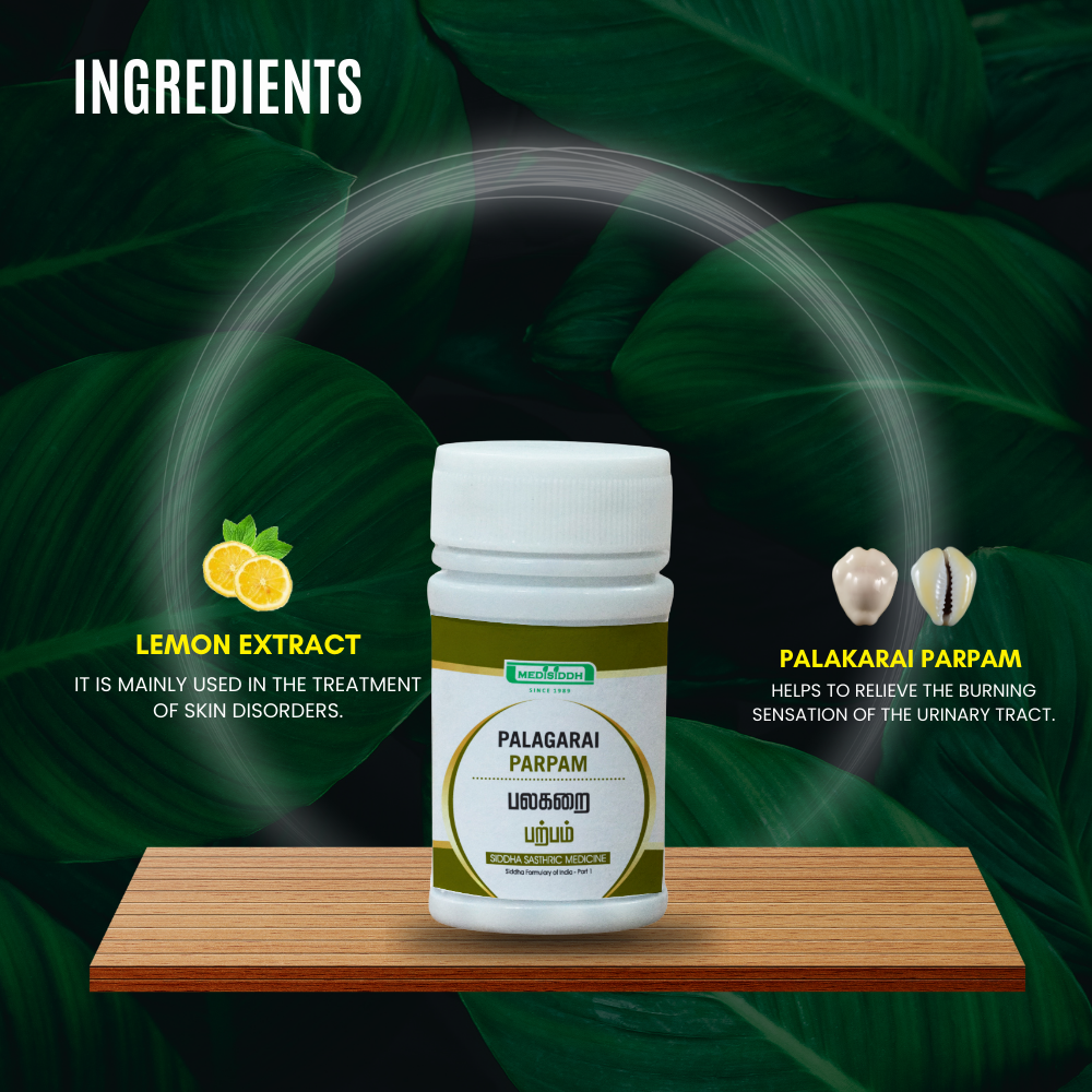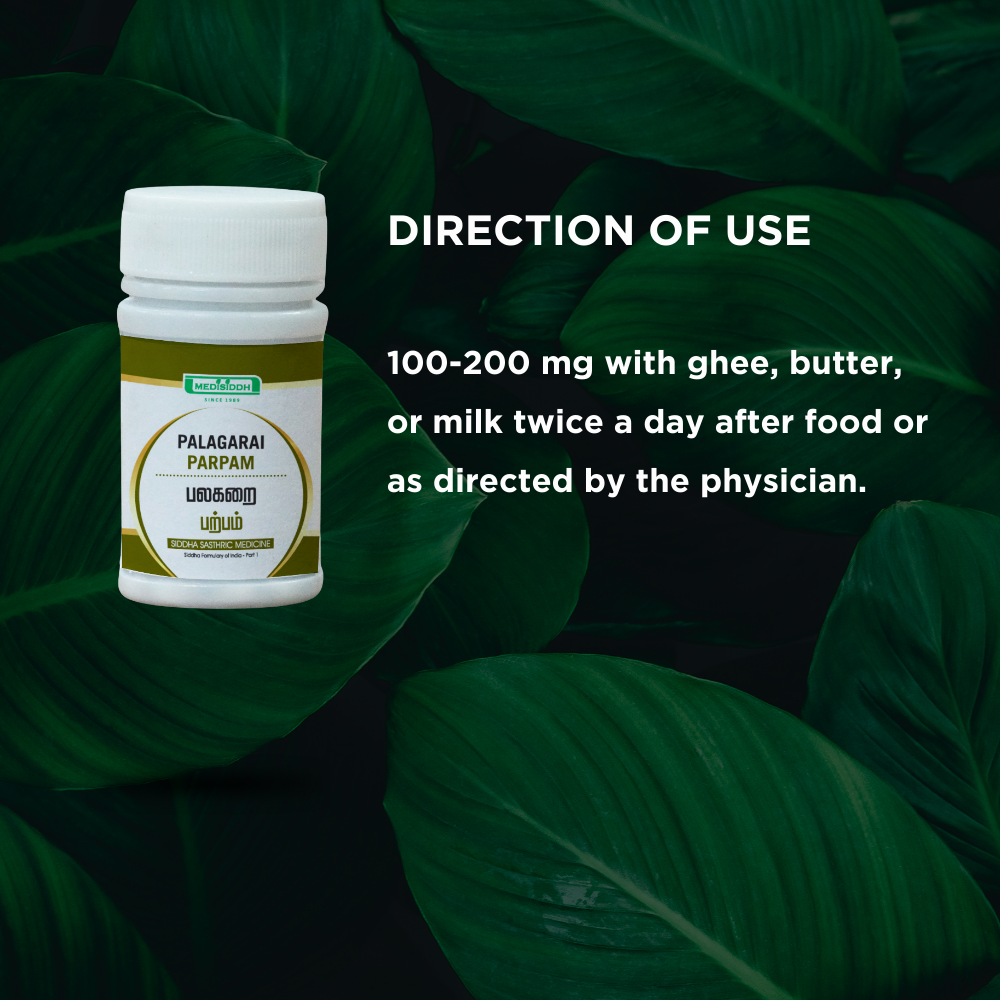 Palagarai Parpam is a traditional Siddha and Ayurvedic formulation made using natural ingredients, known for its holistic wellness support.