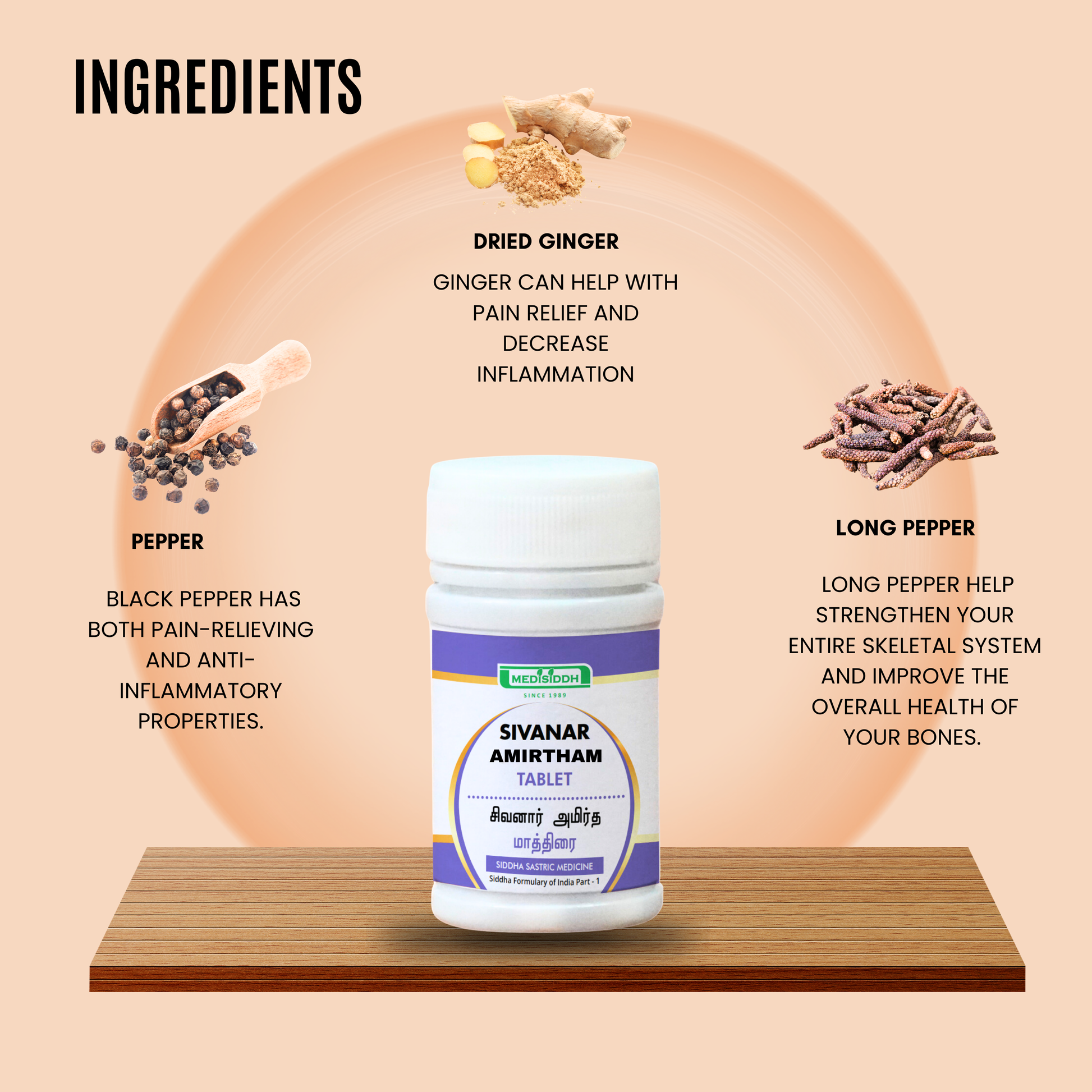 A classical Siddha medicine made with a blend of eight purified minerals and botanicals, traditionally used to help support bone, joint, and muscular comfort. Crafted to complement daily wellness routines with natural anti‑inflammatory and analgesic properties.