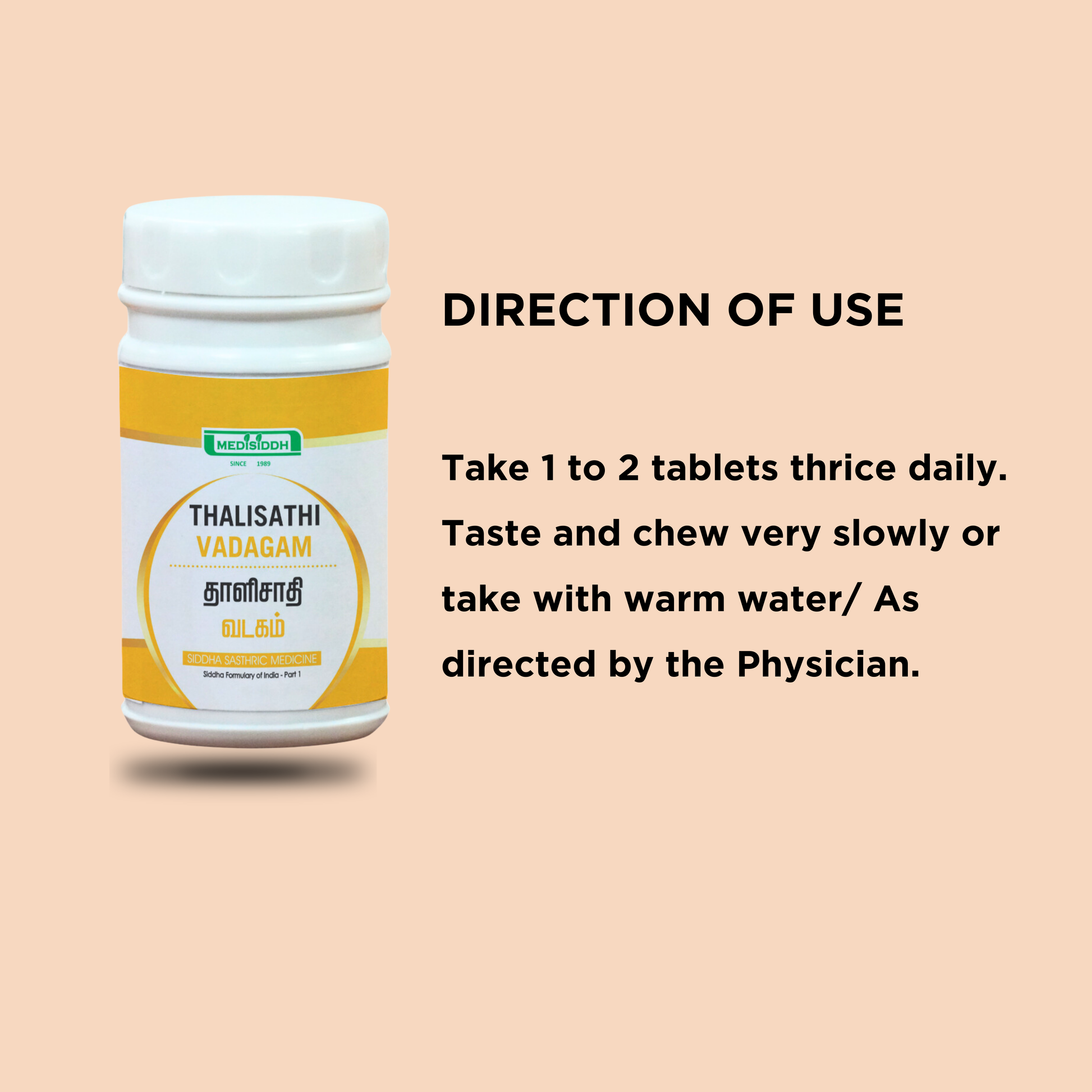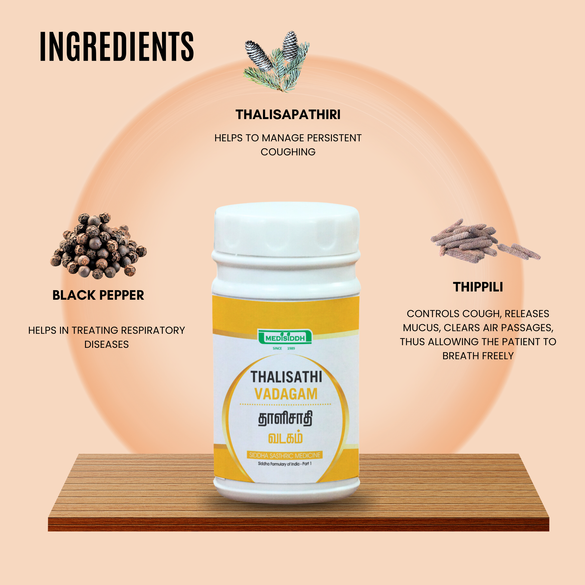 Thalisathi Vadagam is a traditional herbal formulation known for its soothing properties.